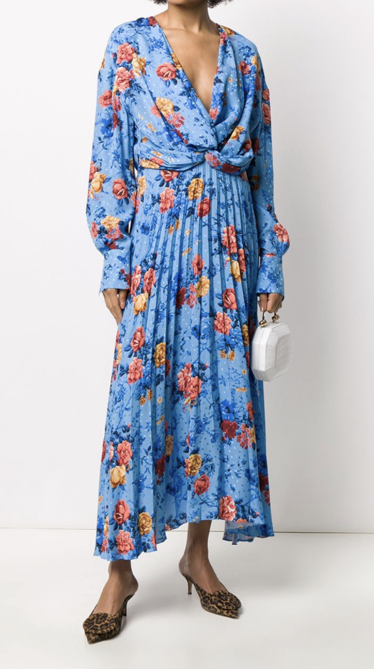 파페치 사이트에 드레이프 플로럴 드레스라고 올라와있는데요. 조금 애매하지만 아름다운 블루빛에 플라워 무늬가 가득한 플리츠 드레스에요.