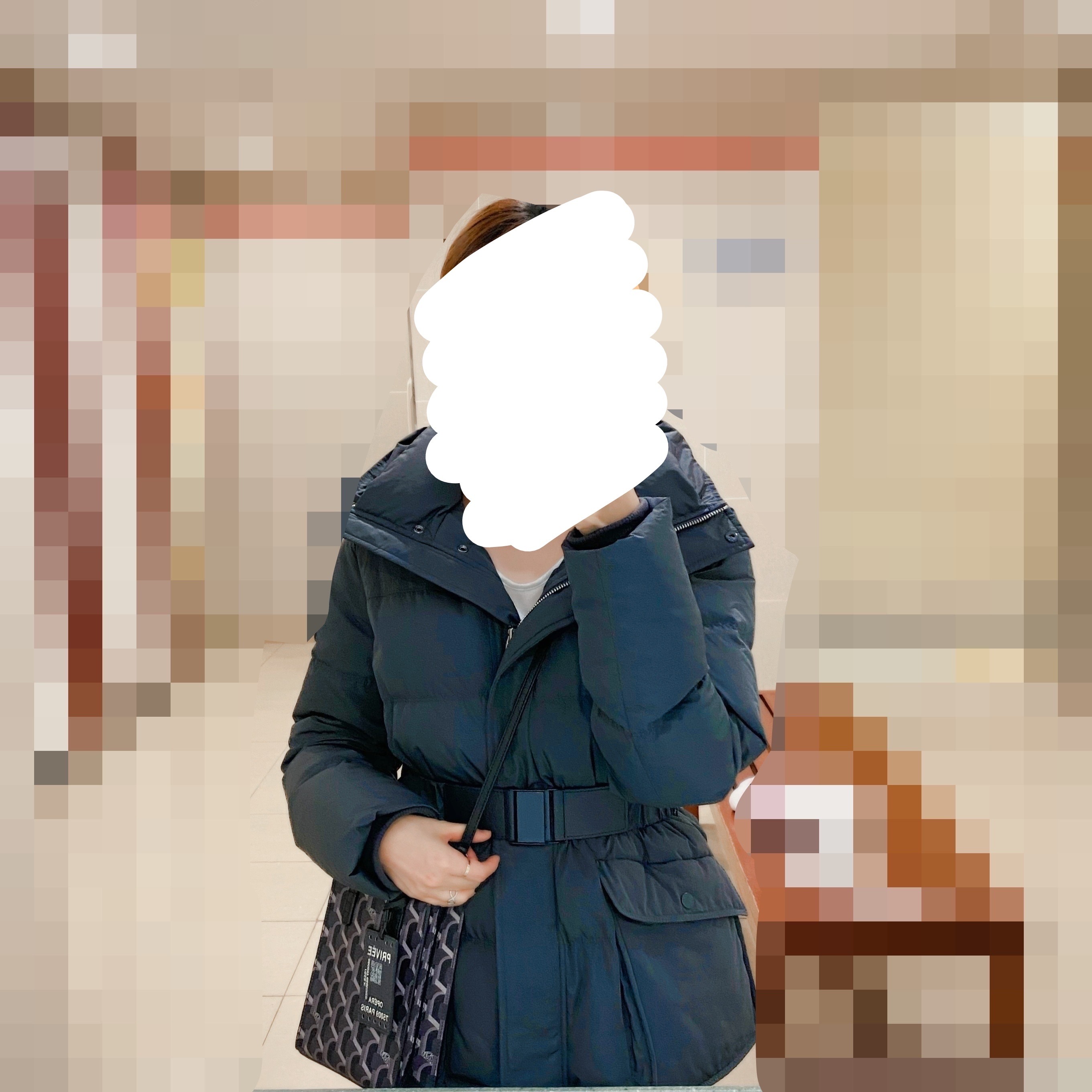 근데 제 얼굴빛에는 안 어울리는 느낌이기도 하고, 뭔가 전체적인 느낌은 참 예쁘기도 하고 사진과 똑같은데 패딩 특유의 부해보이는 느낌은 진짜 어쩔 수가 없는거에요.