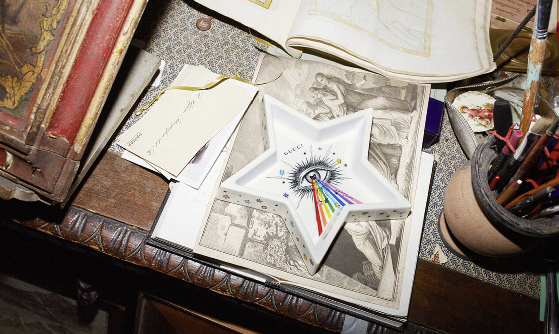 구찌의 스타아이, 브로쉐, 어티카페록스 머그잔과 나비캔들이에요. 제가 이 컬렉션 사진을 보고 포스팅을 해야겠다고 생각했지요^^