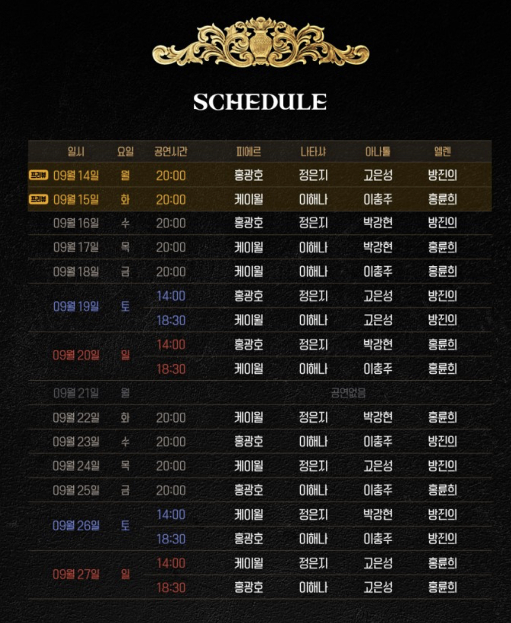 스케줄표 확인하셔서 좋아하는 배우님 출연하실때로 예매하세요😍