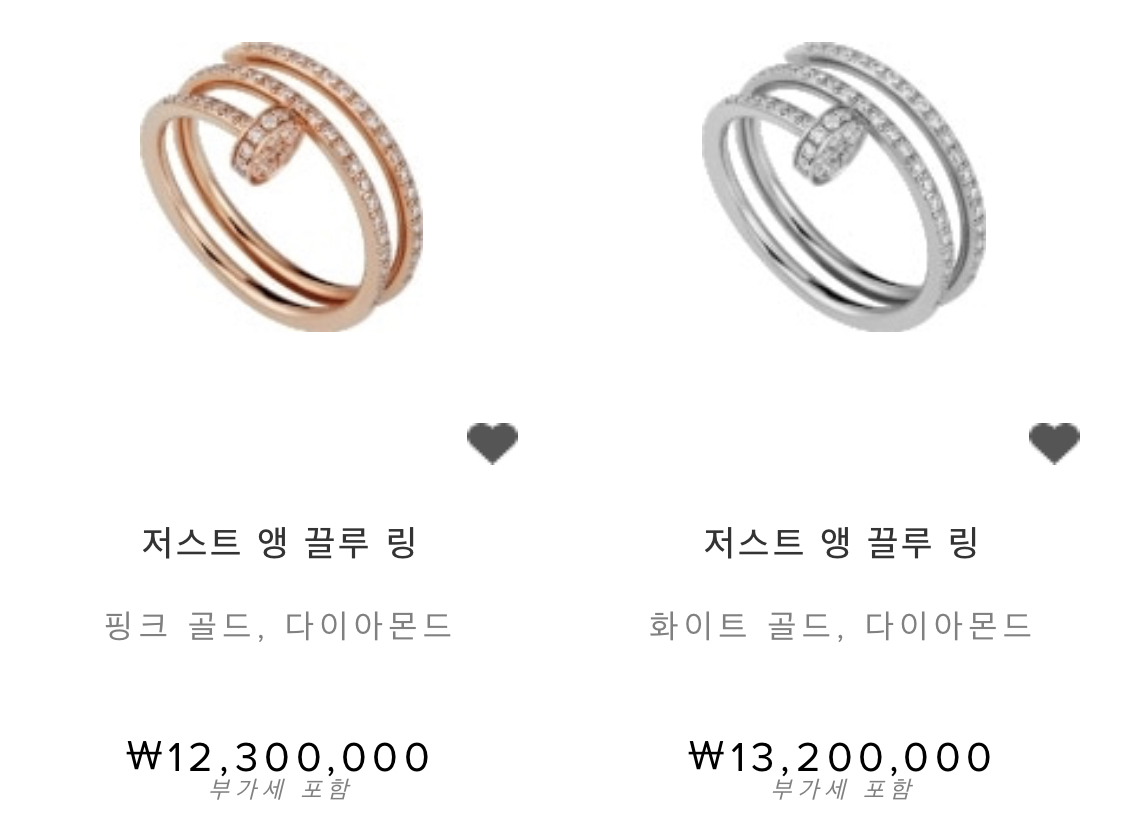 기존 명품 쥬얼리에서 볼 수 없었던 과감한 디자인이 아주 특징적인데요. 디자인 자체가 유니크하다보니 못반지=까르띠에=명품 공식이 설립되면서 이걸 착용한 사람은 까르띠에를 하고 있는 멋쟁이라는게 확 눈에 들어오는 것 같아요.