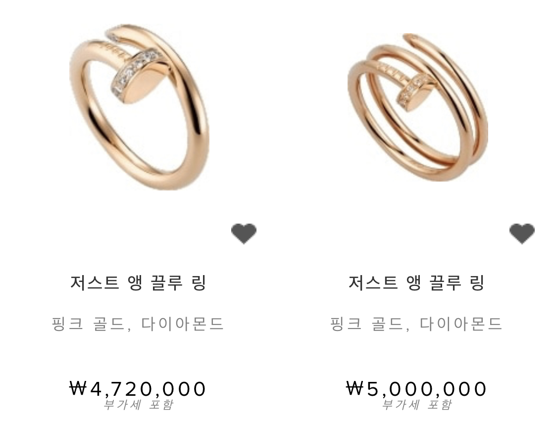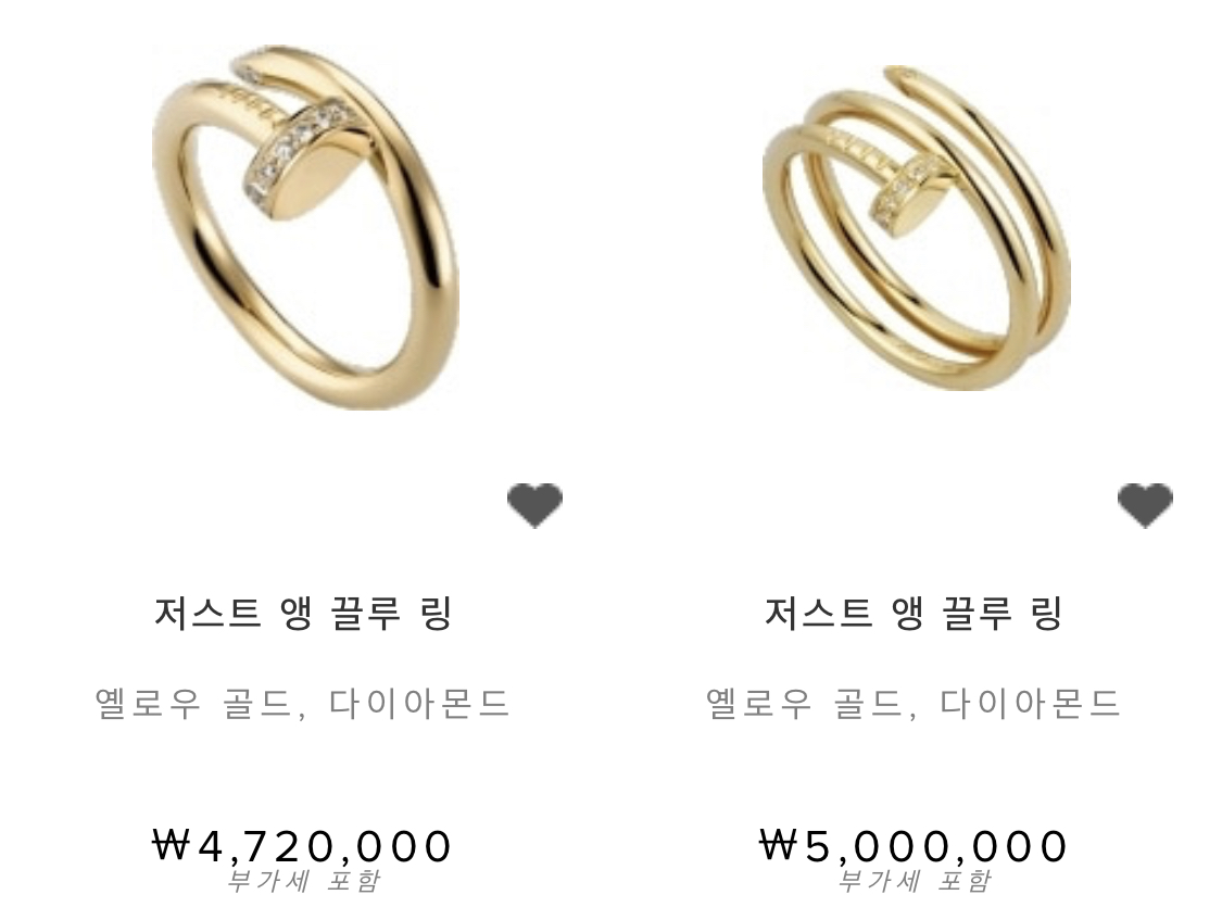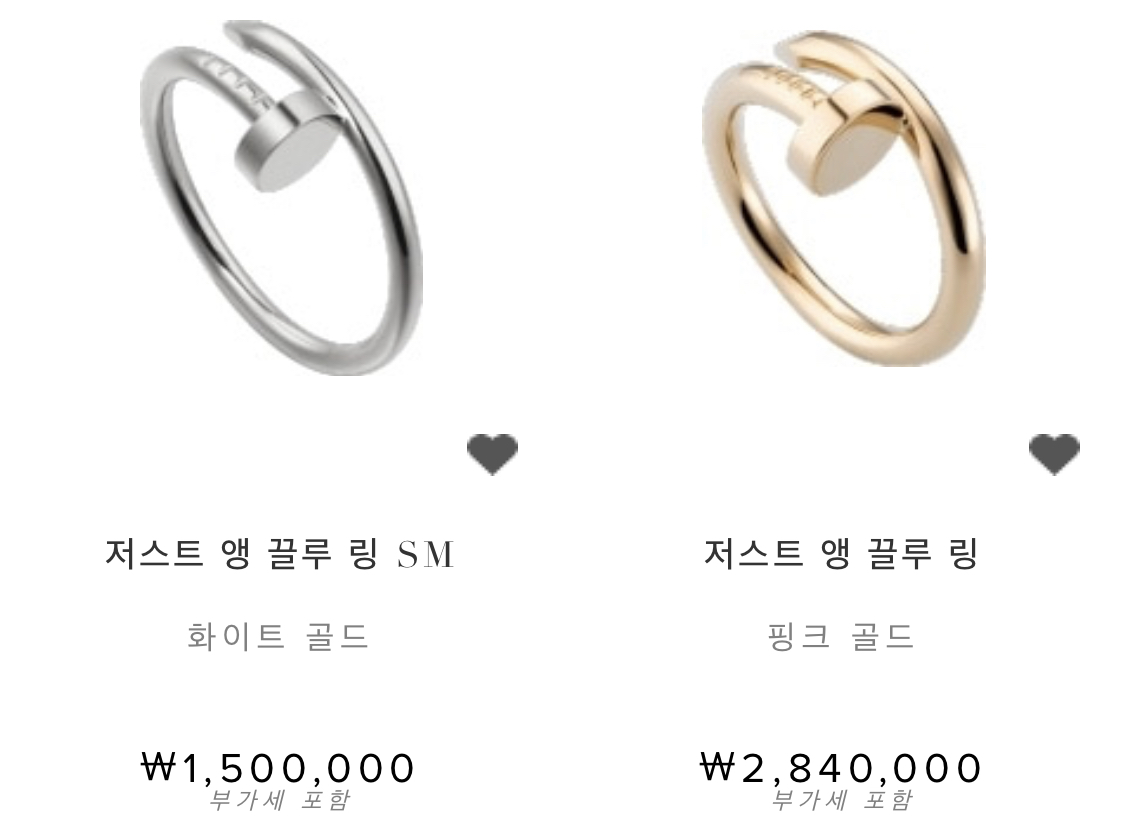 기존 명품 쥬얼리에서 볼 수 없었던 과감한 디자인이 아주 특징적인데요. 디자인 자체가 유니크하다보니 못반지=까르띠에=명품 공식이 설립되면서 이걸 착용한 사람은 까르띠에를 하고 있는 멋쟁이라는게 확 눈에 들어오는 것 같아요.