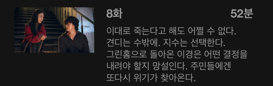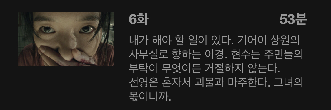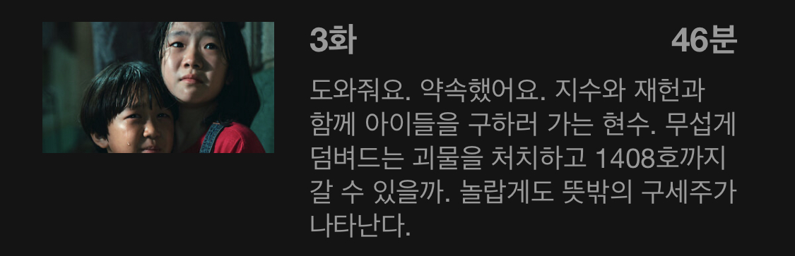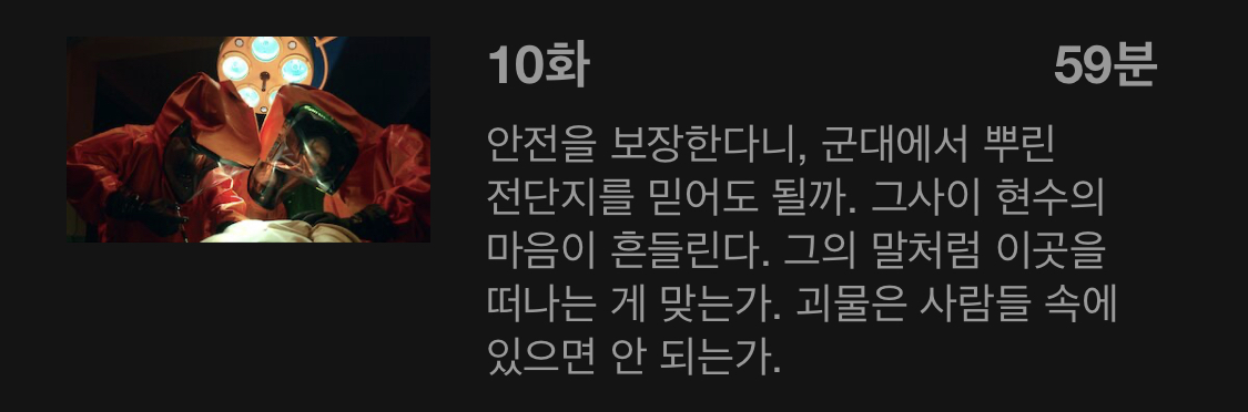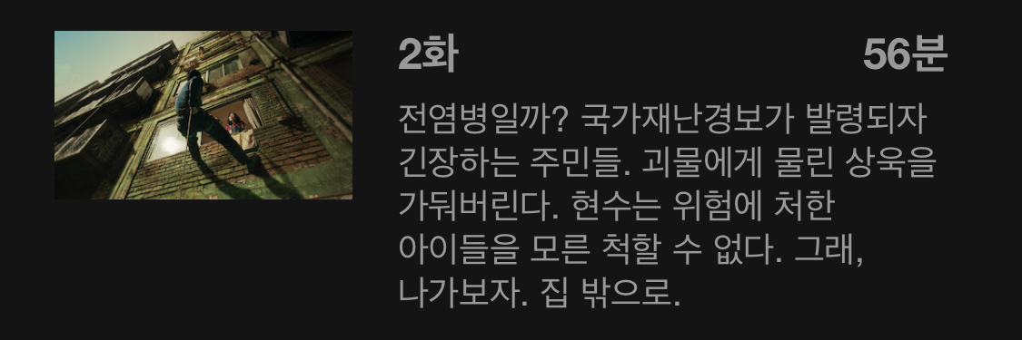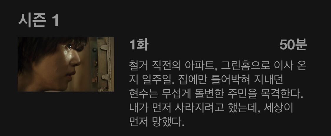 스위트홈은 한달도 안된 따끈따끈한 넷플릭스 오리지널의 신상 시리즈에요. 영화처럼 딱 한편으로 끝나는게 아니라 시즌1이라고 해서 그 안에 10편의 이어지는 드라마(?) 처럼 되있는 구성입니다.