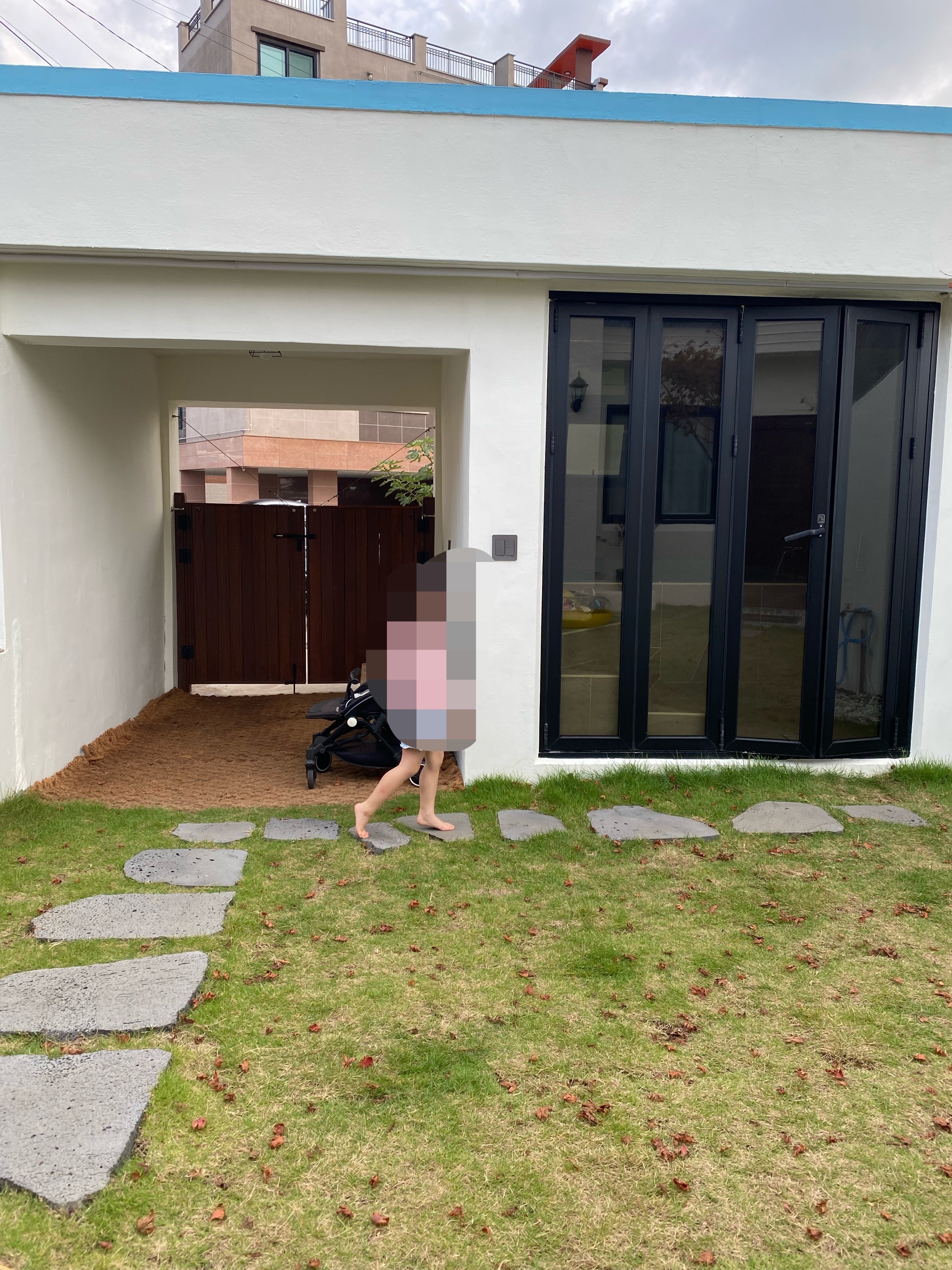 계속 마당을 맨발로 다니는 아이 ㅋ