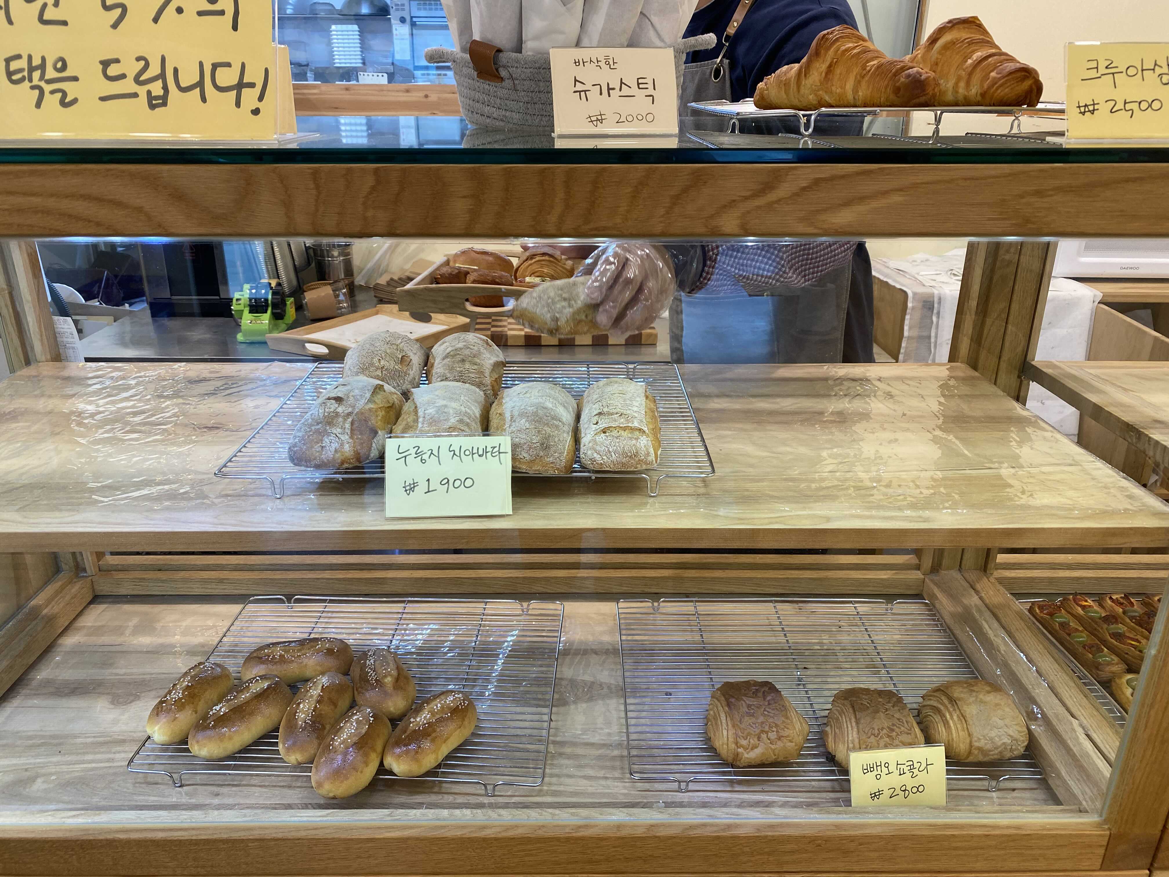 그리고 오픈 시간에 가니까 계속 새로운 빵들이 나오고 있더라구요. 제 앞에 분 주문하고 제 차례때 새로운 빵들 몇가지 더 나와서,,괜히 앞사람 쫌 그렇겠다 싶더라구요 ㅎㅎ