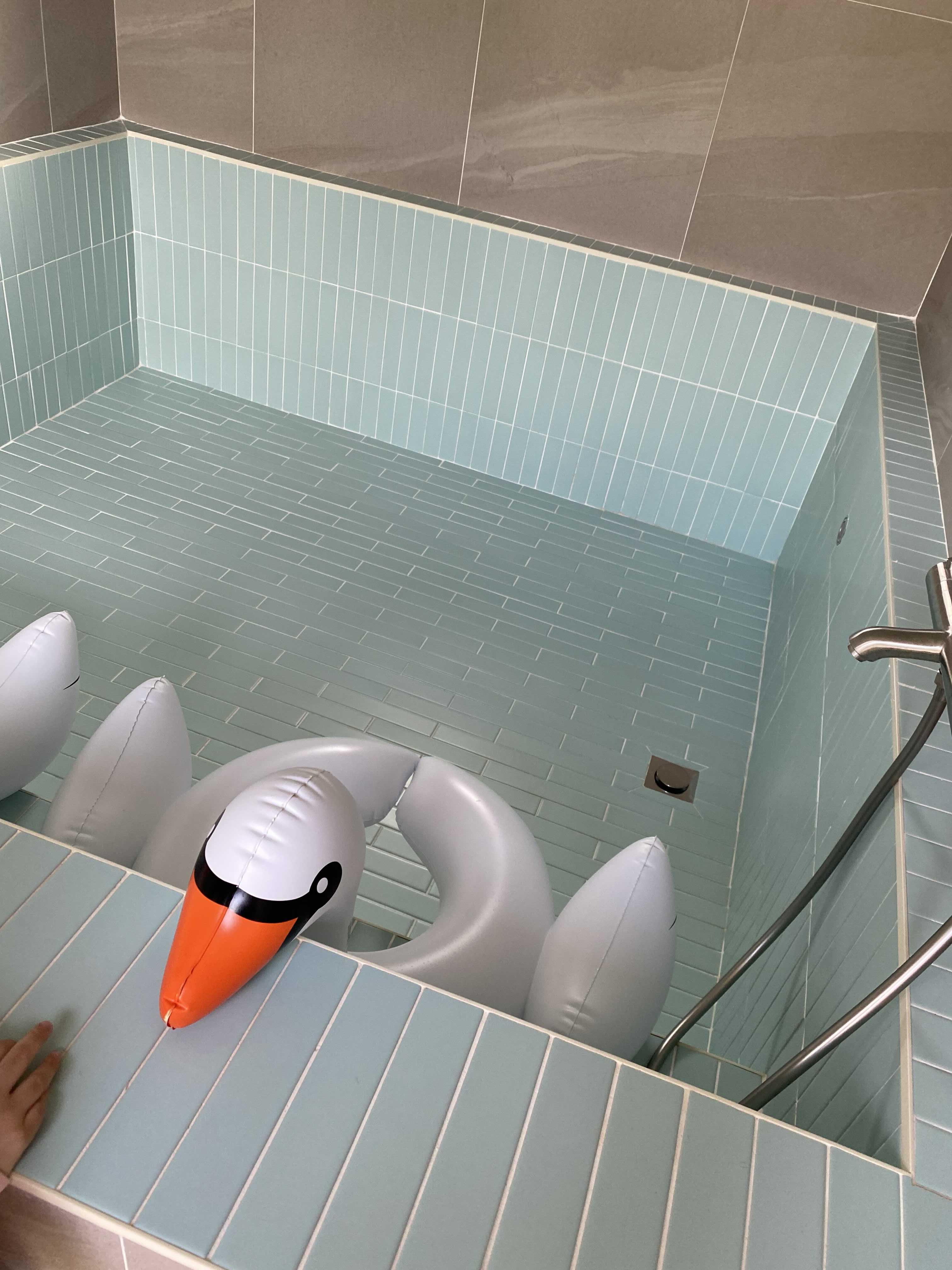 물 담는데 최소 2-3시간, 발목-종아리 부위까지 물 받아져요. 진짜 풍덩풍덩 놀고 싶으면 기본 5시간은 물을 틀어놔야 되지 않을까 싶어요.
