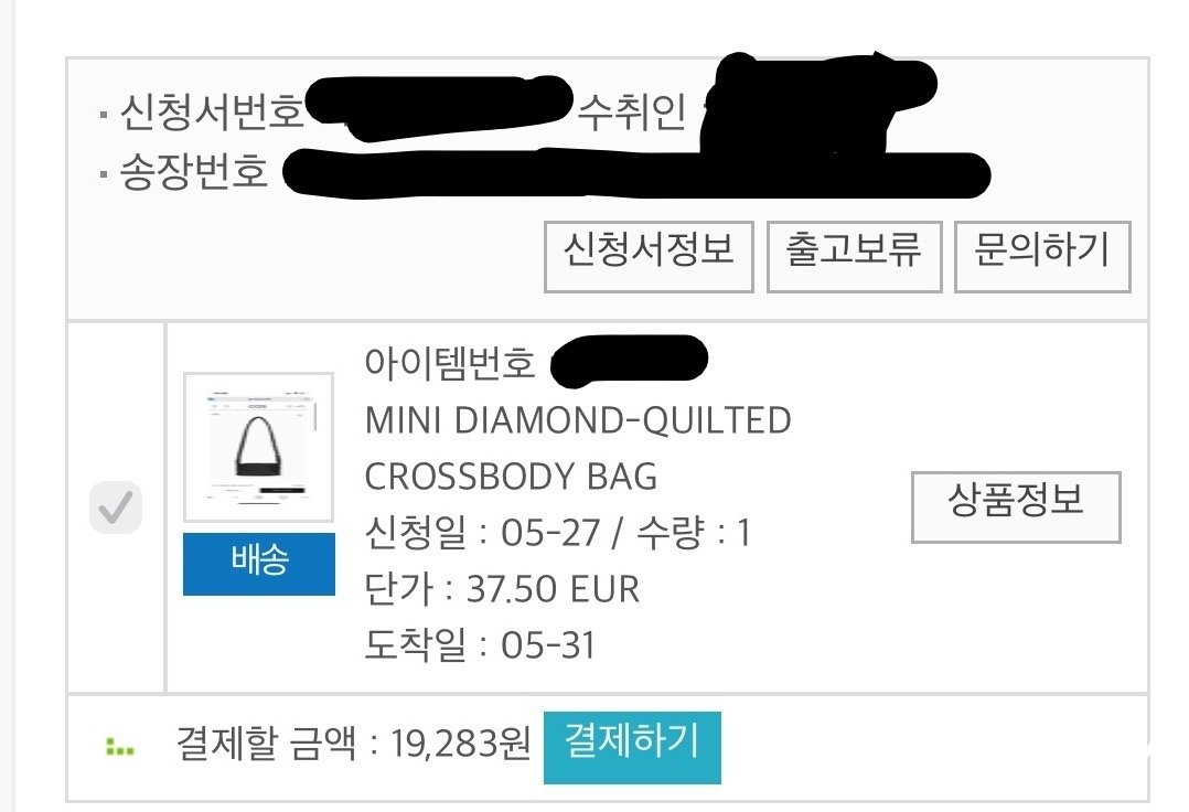 35유로짜리 가방이 한국까지 건너오는데 든 총비용은 무려 72000원!!!