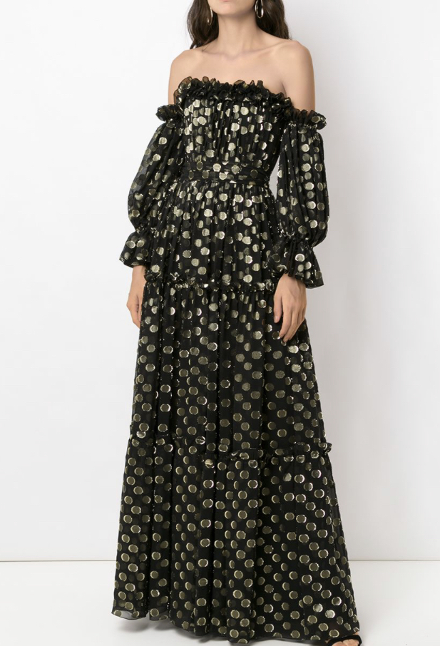 오프숄더 폴카 도트 이브닝 드레스