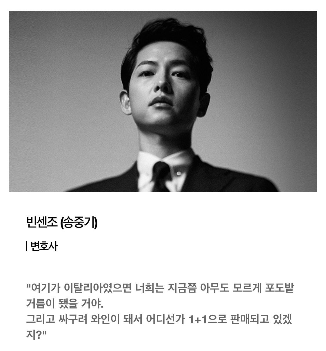 태양의 후예때도 그렇게 관심 없었는데, 아니 정장 입고 있는 모습 진짜 너무 멋있는거 아니에요?! 저 송중기님 이 정장입은 모습에 빈센조 보려구요. 냉혈한 이탈리아 마피아 변호사의 모습을 어떤식으로 표현할지 아주 많이 기대합니다❤️