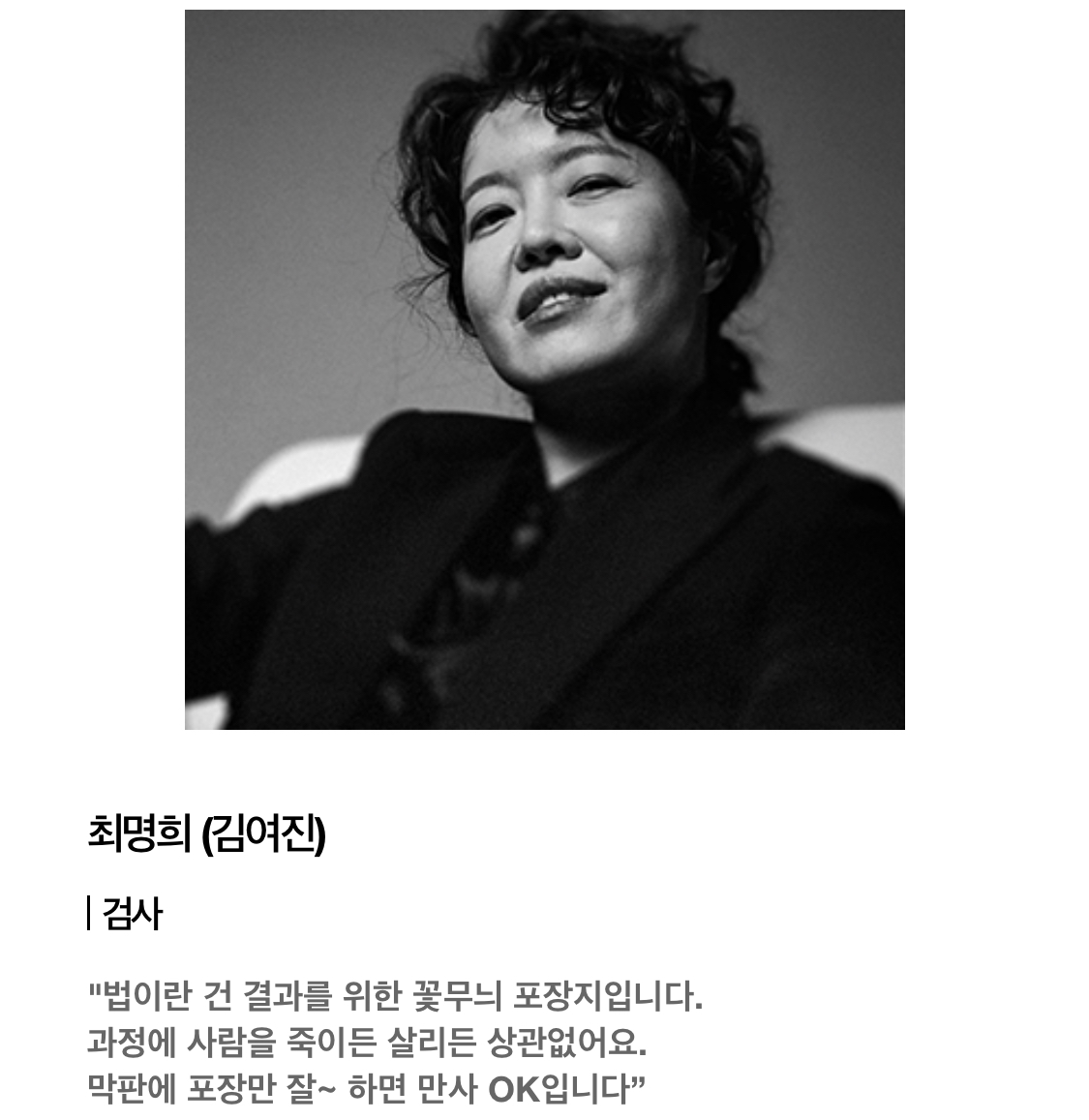 그리고 전여빈님은 등장인물 소개에 보니까,대한민국 최고의 로펌 [우상]의 에이스 변호사이지만 오직 ‘성공과 목표'만을 발전의 원동력으로 삼으며 '정의’엔 크게 관심이 없는 인물로 나오네요. 그렇지만 어떤 사건으로 인해 송중기와 손을 잡으며 변화하지 않을까 싶네요!