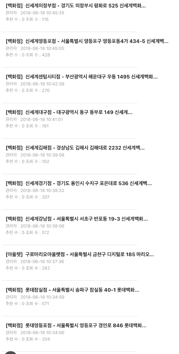 그리고 전국에 있는 오프라인 매장 정보도 쭉