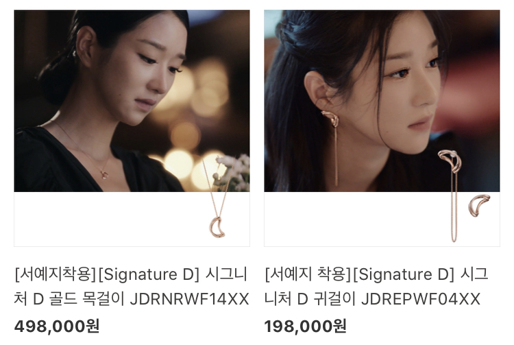 사이코지만 괜찮아 드라마에서 서예지가 착용했던 D자 모양의 귀걸이와 목걸이는 모두 디디에두보 제품입니다. 정확한 모델명은 시그니쳐 D골드 제품으로 가격은 바로 위 사진 참고해주세요.😊
