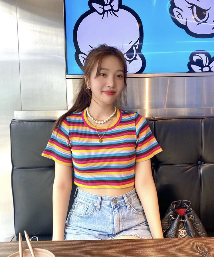 물론 무지개색 특유의 원색조합은 촌스러워보일 수도 있지만 조이양은 과감하게 무지개 크롭탑을 시도했고 이런 실험적이고 때론 과감할수도 있는 패션을 영향력이 있는 아이돌 멤버가 입음으로써 패션 영역이 다양화되고 발전 할 수 있겠죠. 칭찬합니다.❤️