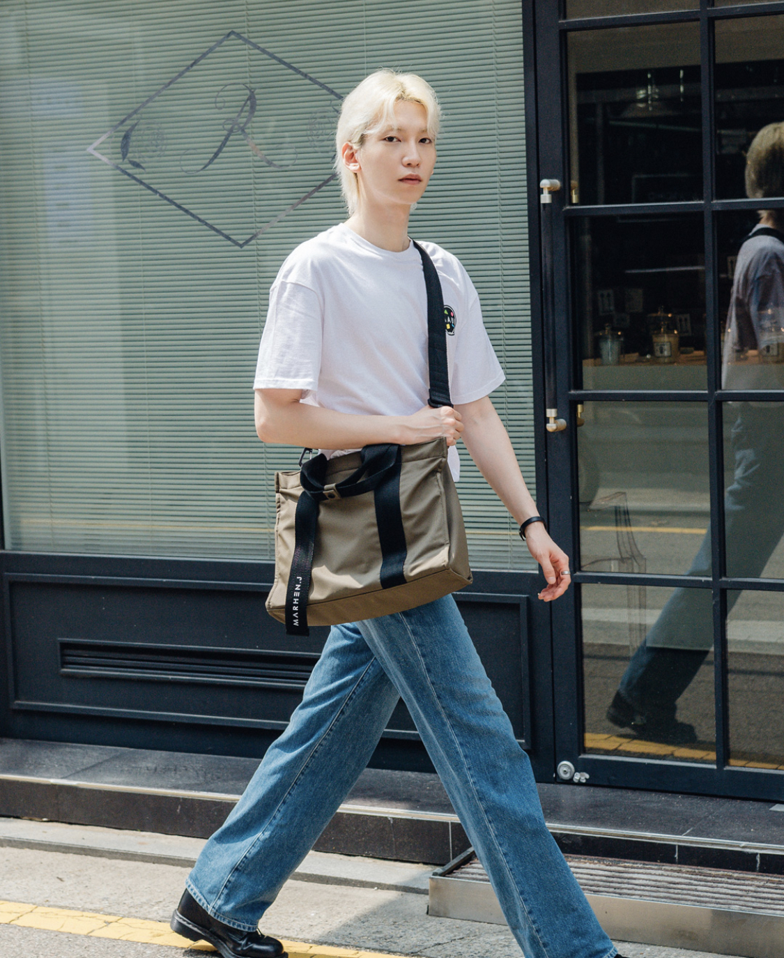 어머, 가방 사진만 봤을때와는 전혀 다른 느낌이에요. 원단이 기존 에코백과는 달라서 그런지 좀 더 트렌디한 느낌이 살아있네요!