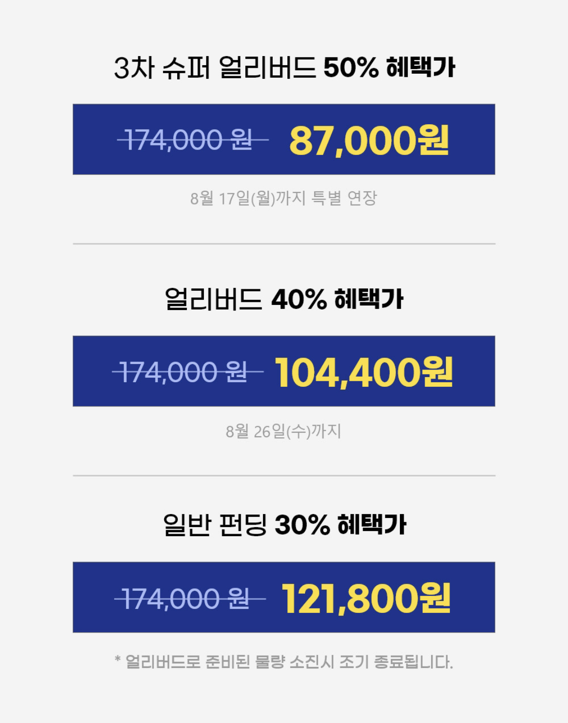 기존가격보다 50퍼센트나 가격에 미리 지불해놓고 펀딩성공시(구매자 일정 한도 채워지면) 배송을 받는건데요.