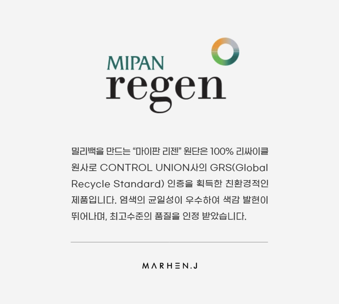 이번에 출시하게 된 밀리백의 원단은 리싸이클 원사로 친환경제품이라고 해요. 🤭