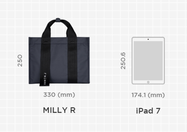좀 더 작은 사이즈를 원하시면 밀리백R로 선택하세요. 이건 33x25cm입니다.