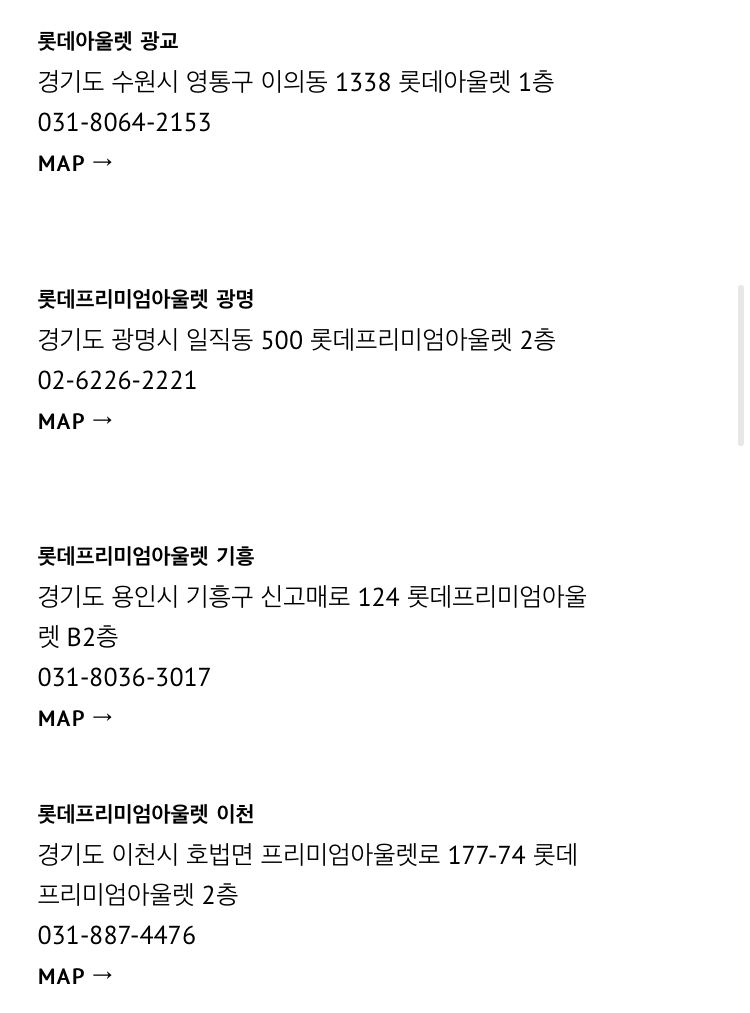 그리고 모조에스핀의 전국 아울렛 정보도 첨부할게요.