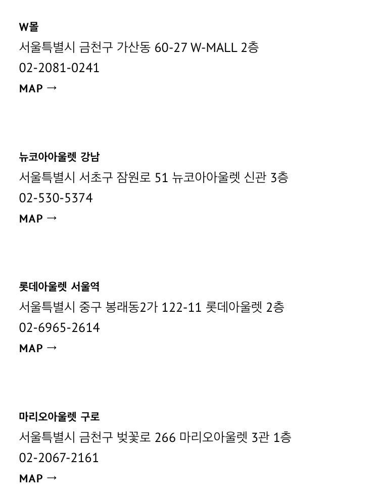 그리고 모조에스핀의 전국 아울렛 정보도 첨부할게요.