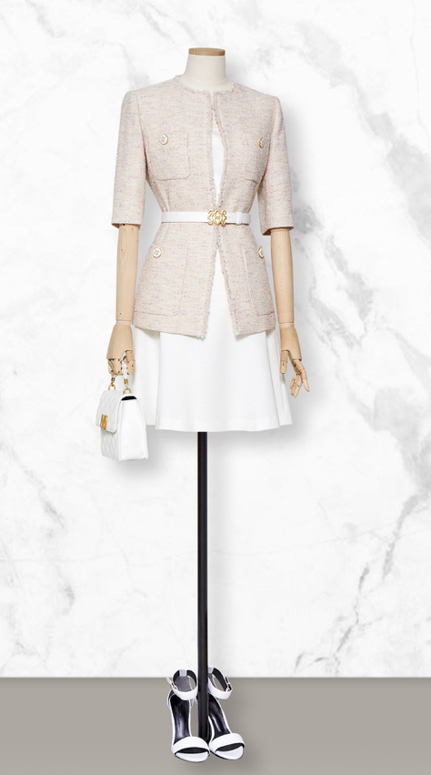 제일 아래에 있는 베이지자켓에 화이트 미니스커트도 독특하면서 격조있는 느낌이라 하객룩으로 넣어보았어요.
