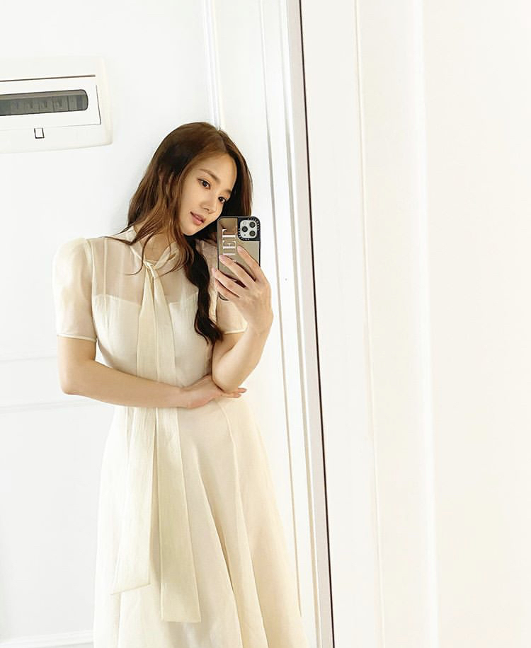 박민영씨가 인스타그램에서 착용한 화이트원피스는 bride and you의 Lille see-through puff shoulder ribbon tie dress이구요. 화이트가 아닌 오트밀 컬러입니다. 릴리 씨쓰로 퍼프 숄더 리본타이 드레스로 시스루 쉬폰 드레스라서 여리여리하면서 고급스럽고 아름다운 느낌이 가득하네요. 그래서 극강 여성미를 가진 스타일리쉬한 배우 박민영씨에게도 엄청 잘 어울렸던 것 같아요.
