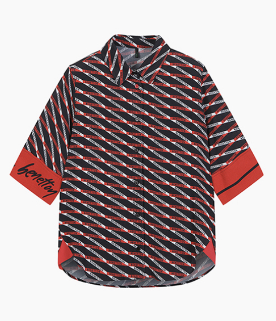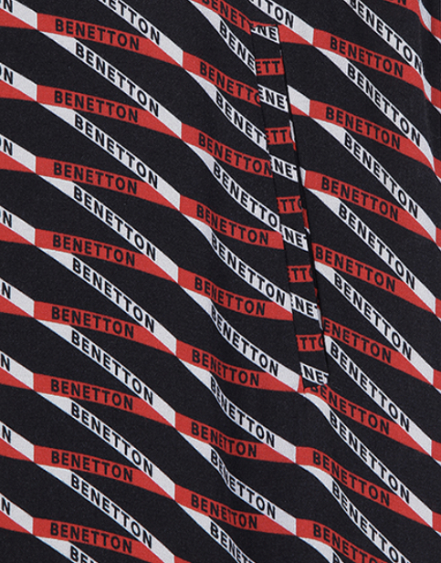 베네통 로고가 가득 들어간 패턴에 가장 자리 쪽으로 레드로 한번 더 크게 포인트!