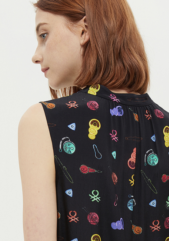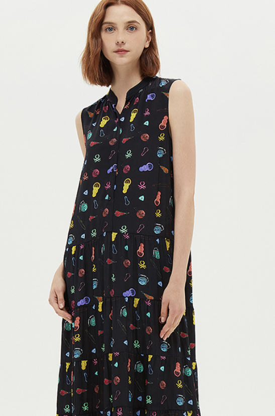 베네통의 패턴 티어드 민소매 원피스로 269000원이에욥!