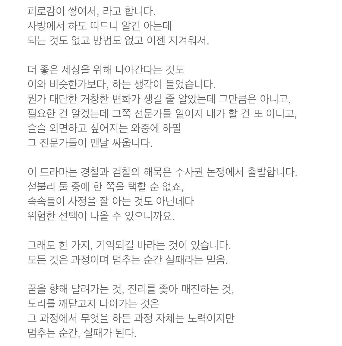 저는 이 기획의도 속 방관하고 침묵하는 사람과 똑같은거 같아요... ㅋㅋ 나름 반성해보지만, 기획의도만 봐도 심도있고 꽤나 복잡한 드라마일것 같아서 내심 고민이 되네요.