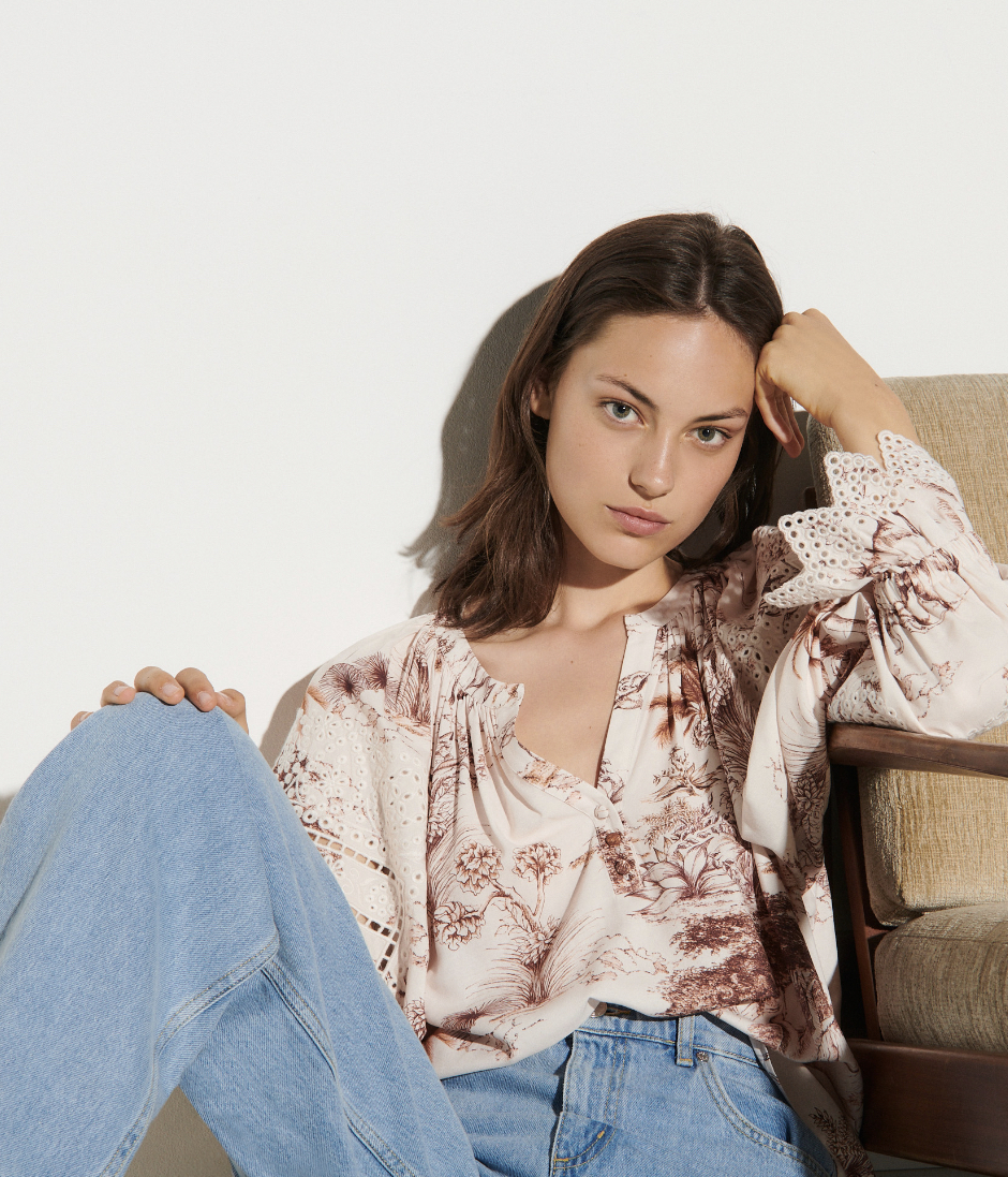브로데리앙글레이즈 프린트탑과 드레스, 점프수트인데요.