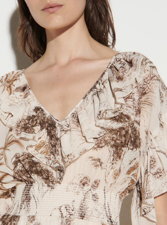 블라우스 340달러, 점프수트 445달러, 프린트드레스 490달러에요.