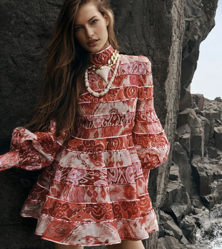 짐머만의 원피스들은 화려한 패턴, 색감, 디테일 등을 가지고 있습니다.