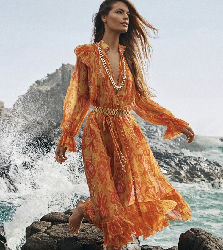 짐머만의 원피스들은 화려한 패턴, 색감, 디테일 등을 가지고 있습니다.