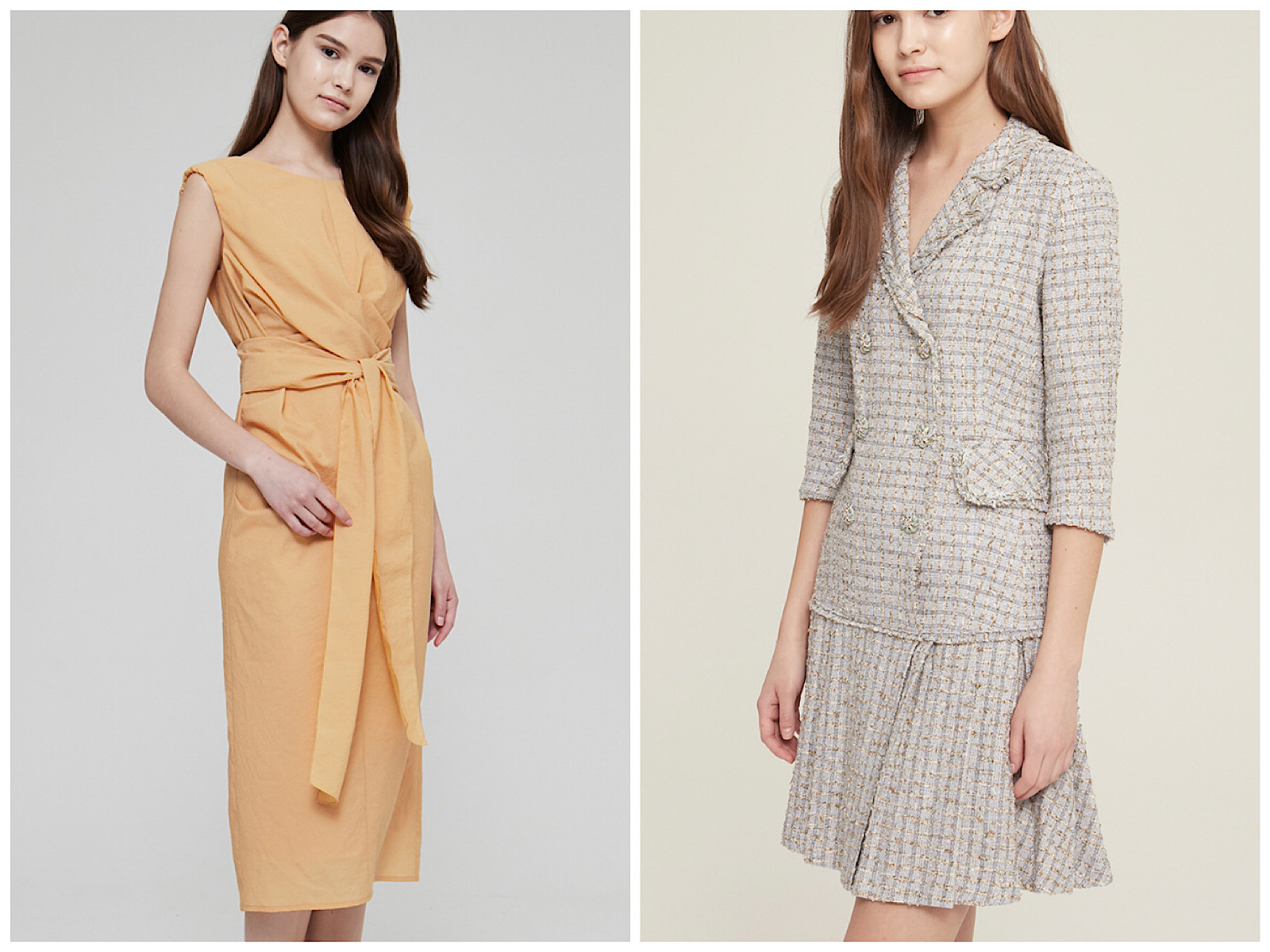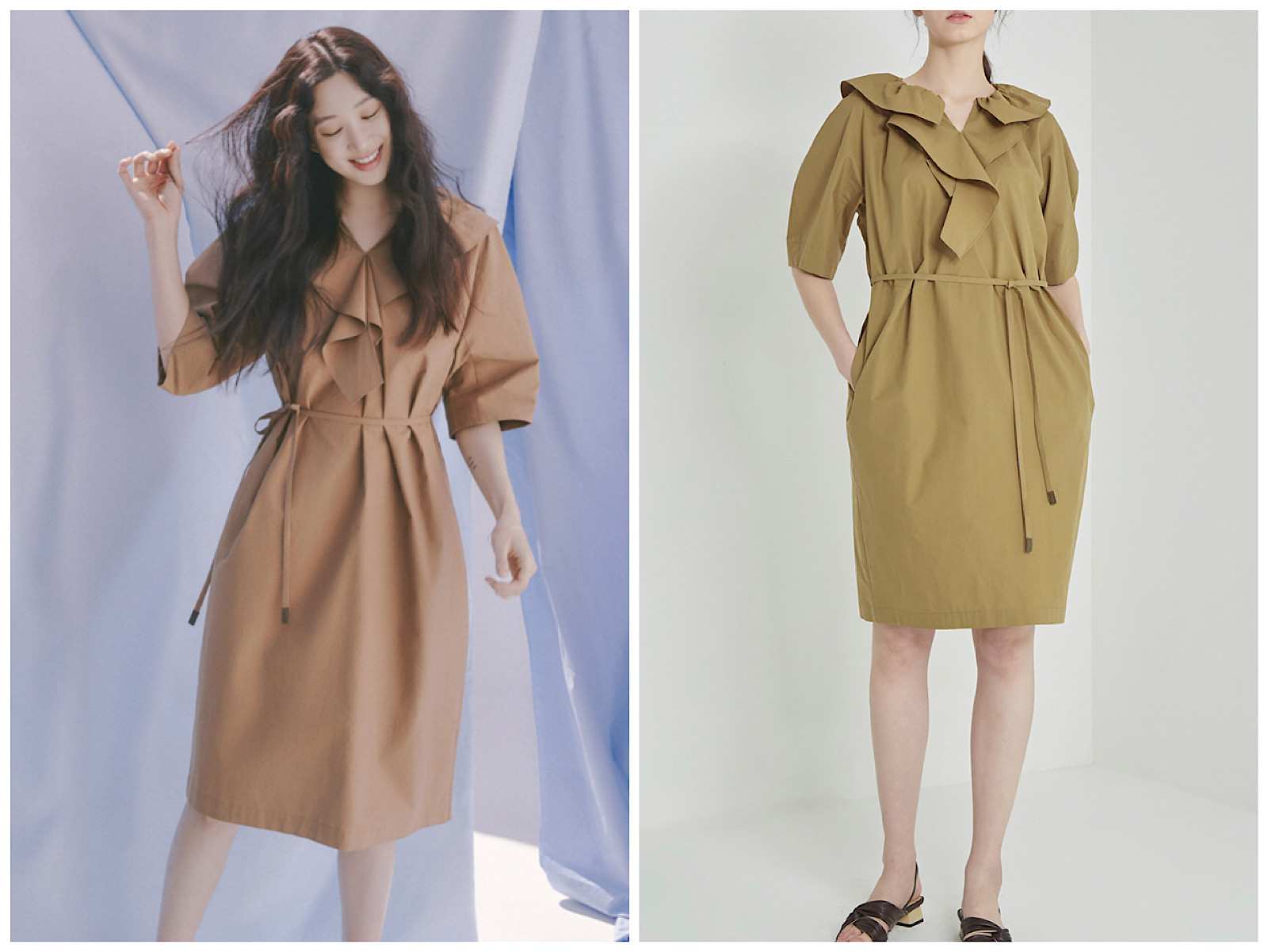 위에 있는 원피스는 려원과 2020 ss광고 캠페인을 함께 하고 있는 sjsj 브랜드 옷입니다.