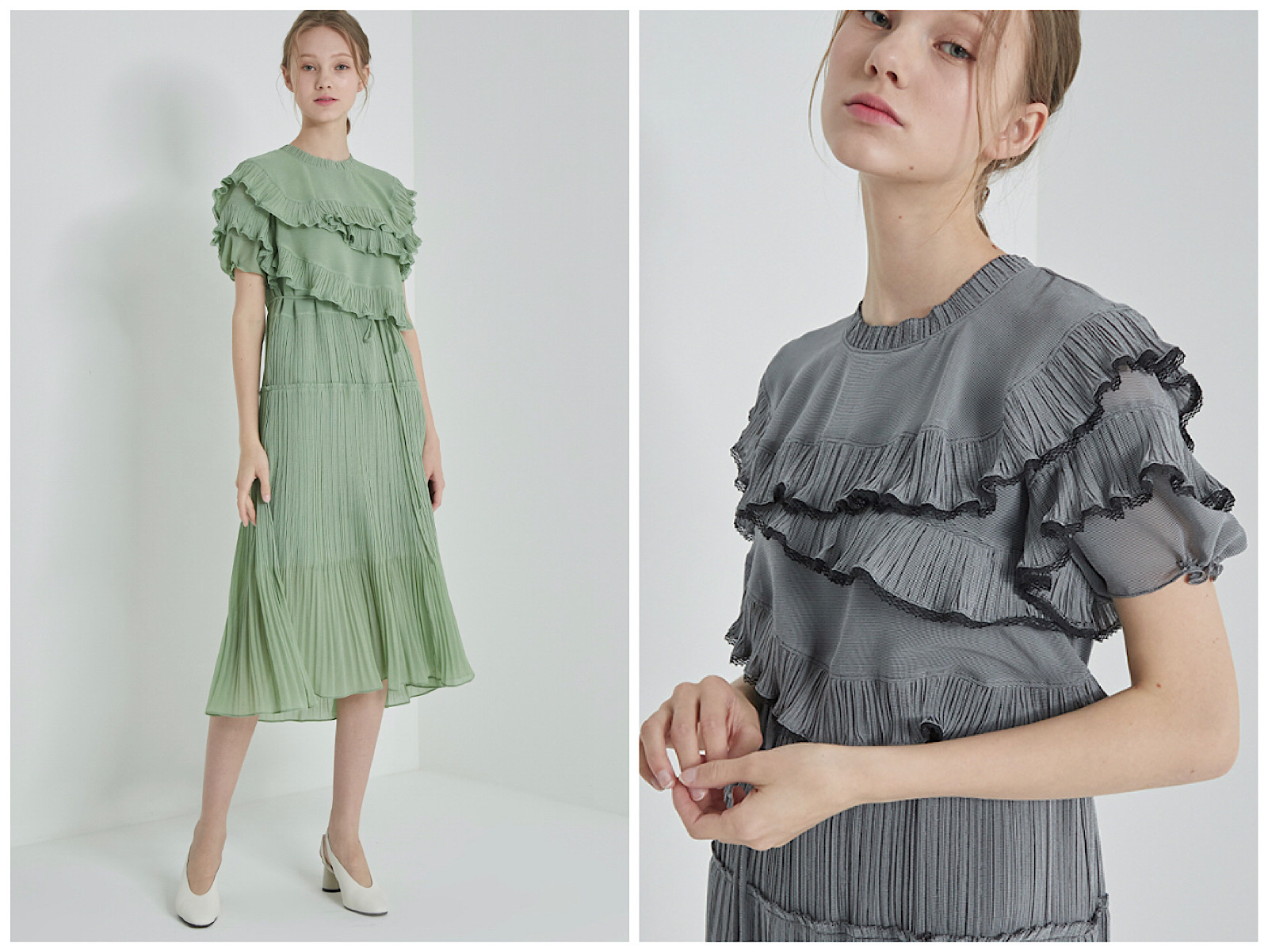 시원하고 하늘거리는 소재에 플리츠 디테일이 더해져