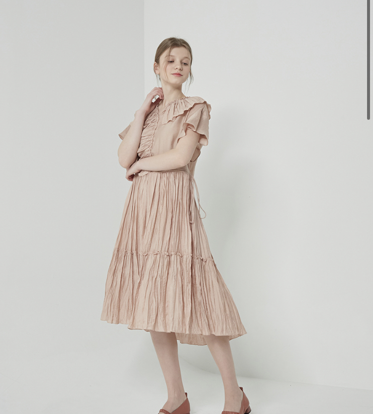 플리츠 주름 디테일이 가득한 sjsj 원피스에요.