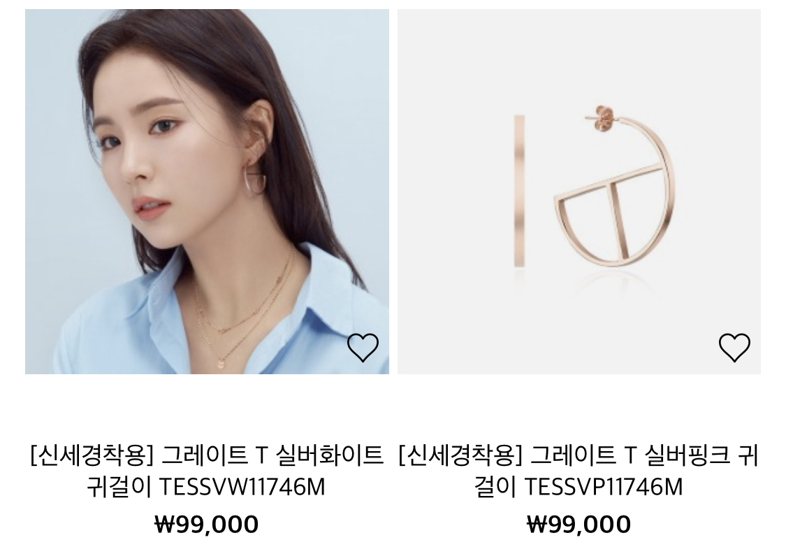 그리고 그레이트 T 실버목걸이도 예쁘고, 같은 라인 귀걸이도 예쁘네요! 신세경씨가 해서 더 그래보이나요? ㅎㅎ