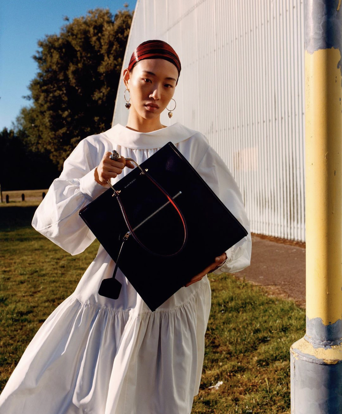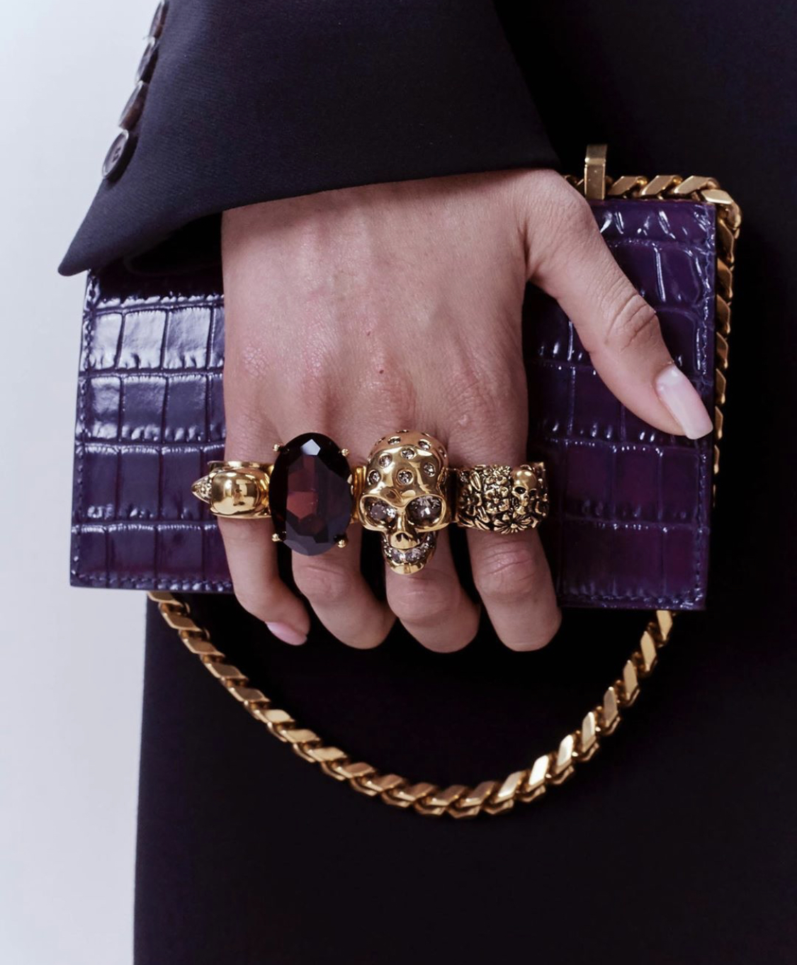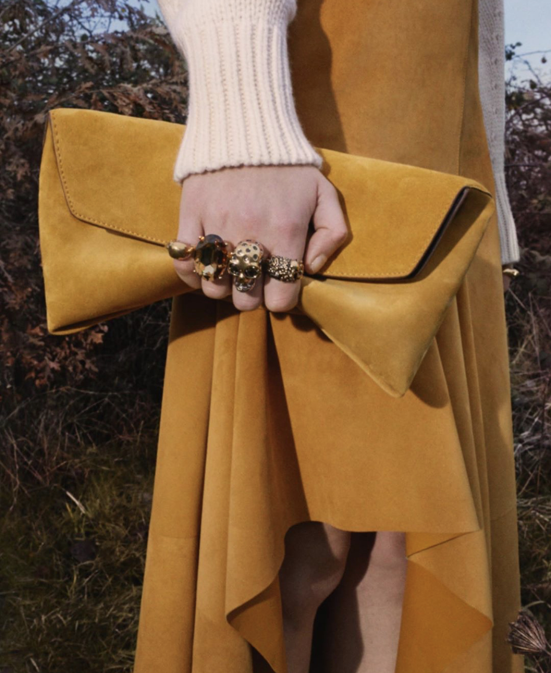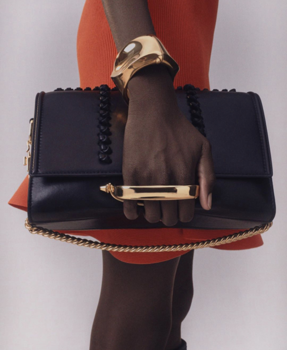 프리폴 컬렉션 사진을 보면서 유난히 눈에 띄던건 맥퀸의 스토리백이였어요. 손으로 감싸는 클러치같은 느낌인데, 반지 여러개를 낀듯한 착시가 느껴지는 독특한 백이에요.