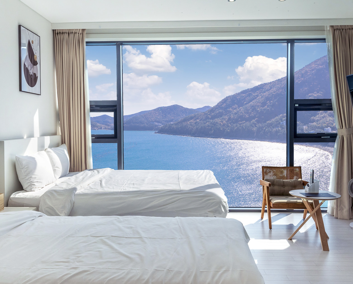 오늘 소개해드릴 여수르그랑블루는 진짜 오션뷰가 끝내주는 곳이에요. 쨍하고 해 뜬 날, 아침에 일어나 밖을 보면 이게 천국이구나 싶을 오션뷰를 가졌어요. ㅜㅜ진짜 너무 예쁨!!