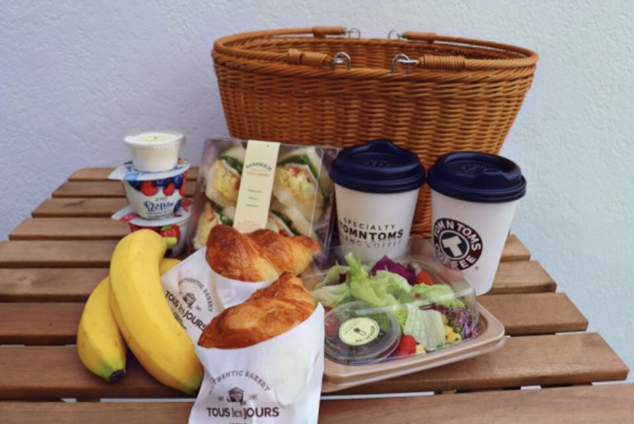 조식은 탐앤탐스 커피와 샌드위치, 크루아상, 샐러드, 과일 등이 포함되어있고 2인 세트 25000원이라고 하네요!