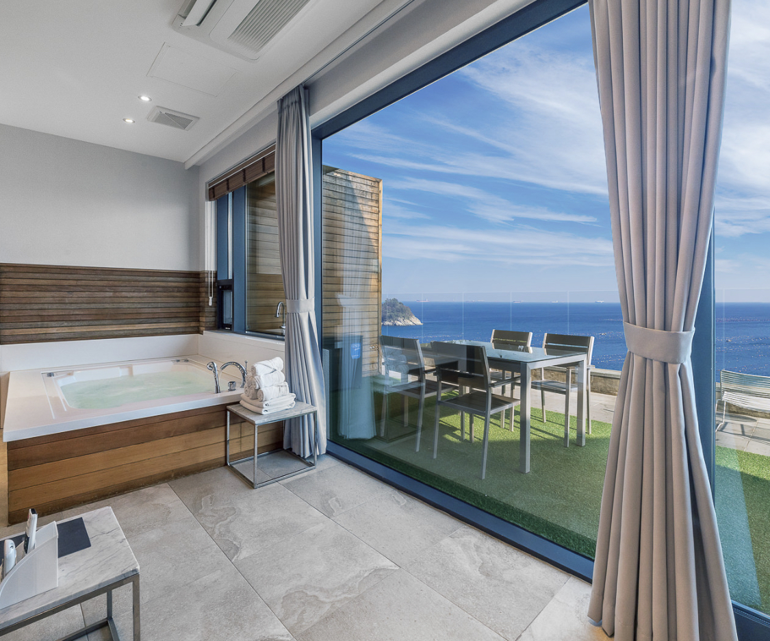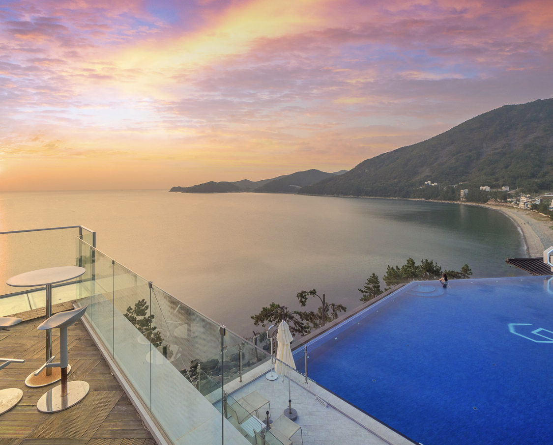 바다와 바로 이어지는듯한 사계절 미온수 인피니티풀 수영장은 이 곳의 자랑입니다.