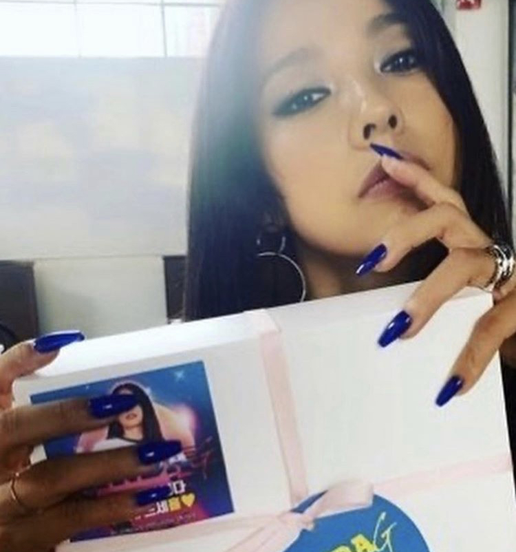 아무튼 우리 효리 언니인 싹쓰리 린다g님은 화사와 비슷한 길고 뾰족한 네일에 컬러풀한 단색을 많이 바르셔요. 파란색 네일 찰떡^^