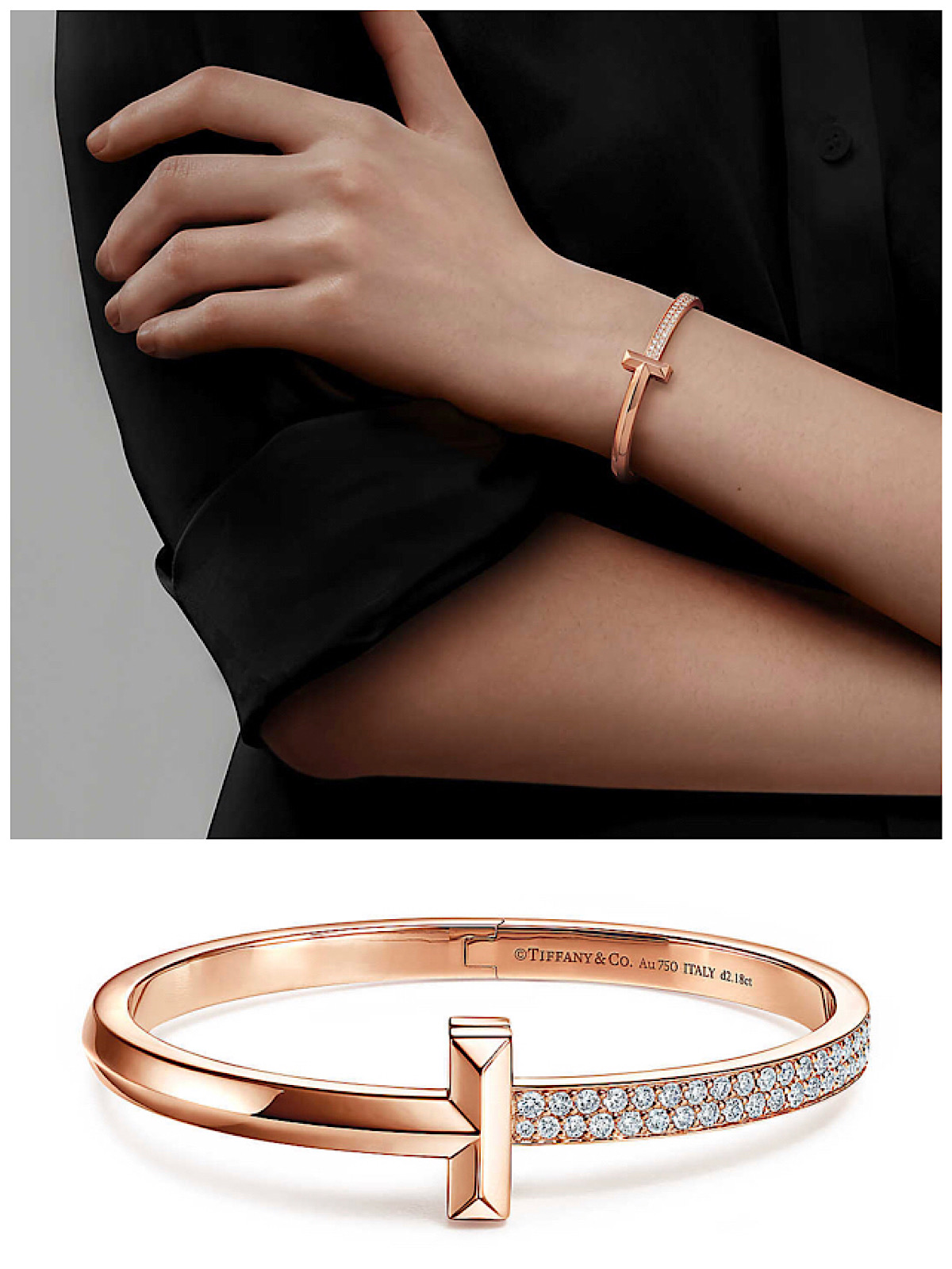 티파니의 18k 로즈골드와 리얼 다이아몬드 뱅글이라면 진짜 우아하고 세련된 느낌이 배가 될 것 같네요.