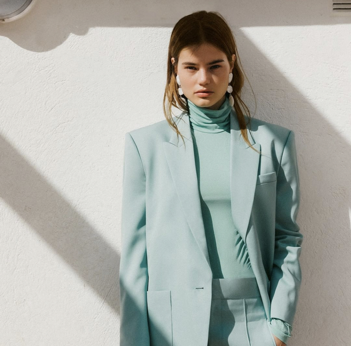 그리고 원피스 외에 또 하나, 바로 니트장인 아니겠어요? ㅋㅋ 와 정말 저 민트색니트는 색감 너무 잘 뽑았네용! 저 니트랑 원피스 같이 스타일링 한 것 같은데 진짜 찰떡찰떡!!