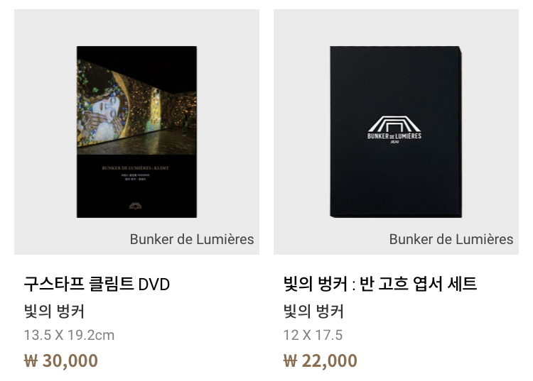 빛의 벙커 구경 후 살 수 있는 아트기념품 목록입니다. 온라인 아트샵에서도 구매가 가능하니 참고하시길 바랍니다.
