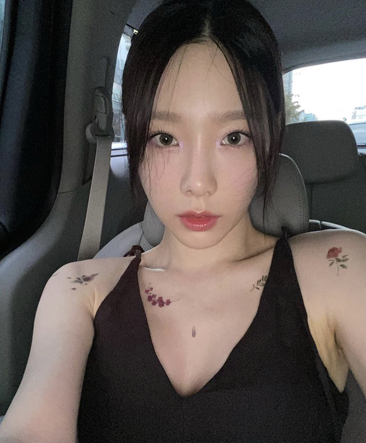 일단 태연 팔뚝에 있는 레터링은 진짜 타투인 것 같아요. 그 외에 장미꽃 타투는 스티커 인 것 같기도 하구요? ㅋ 근데 고혹적이고 매력적이에요.