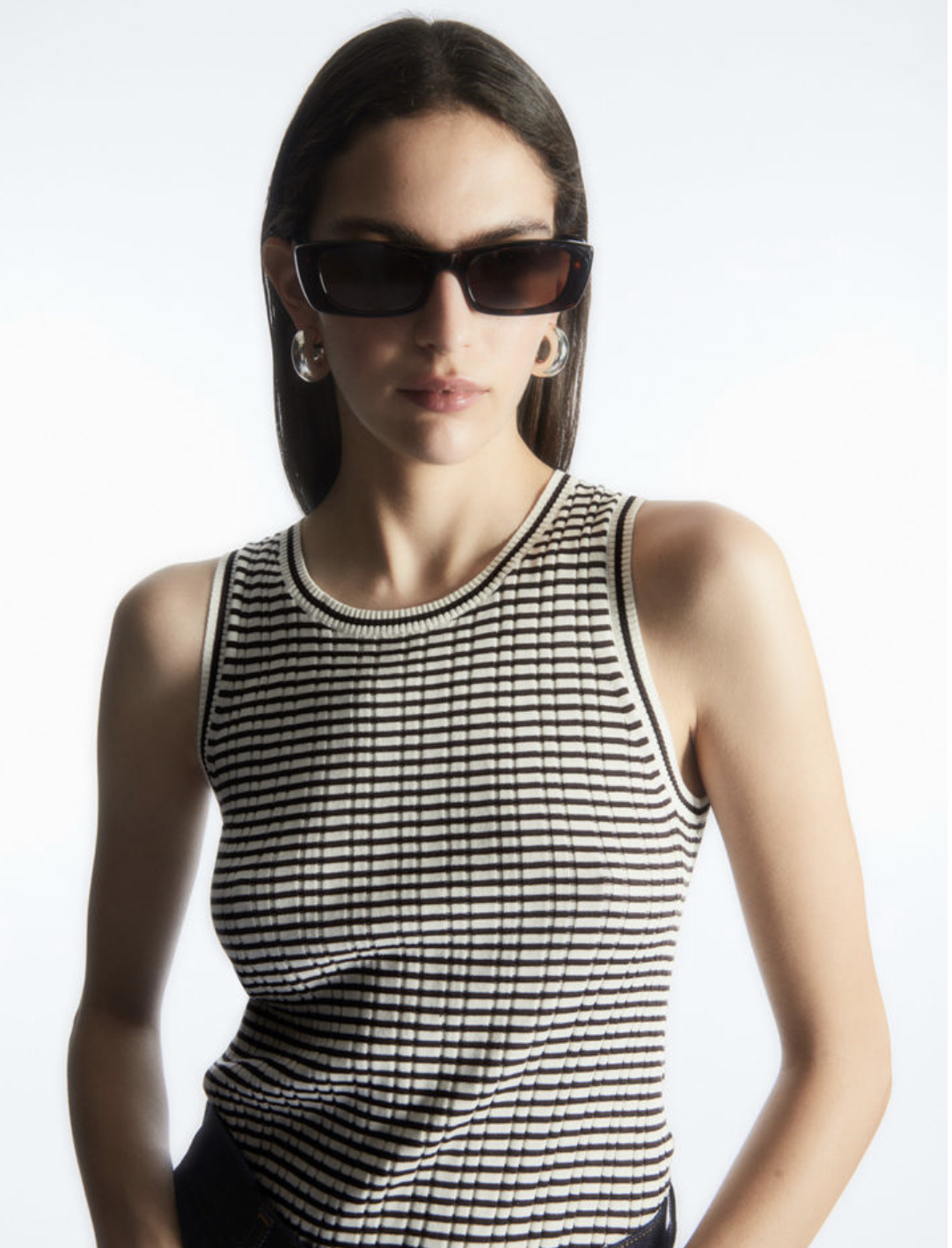 코스 리브드 니트 실크 슬리브리스 탑