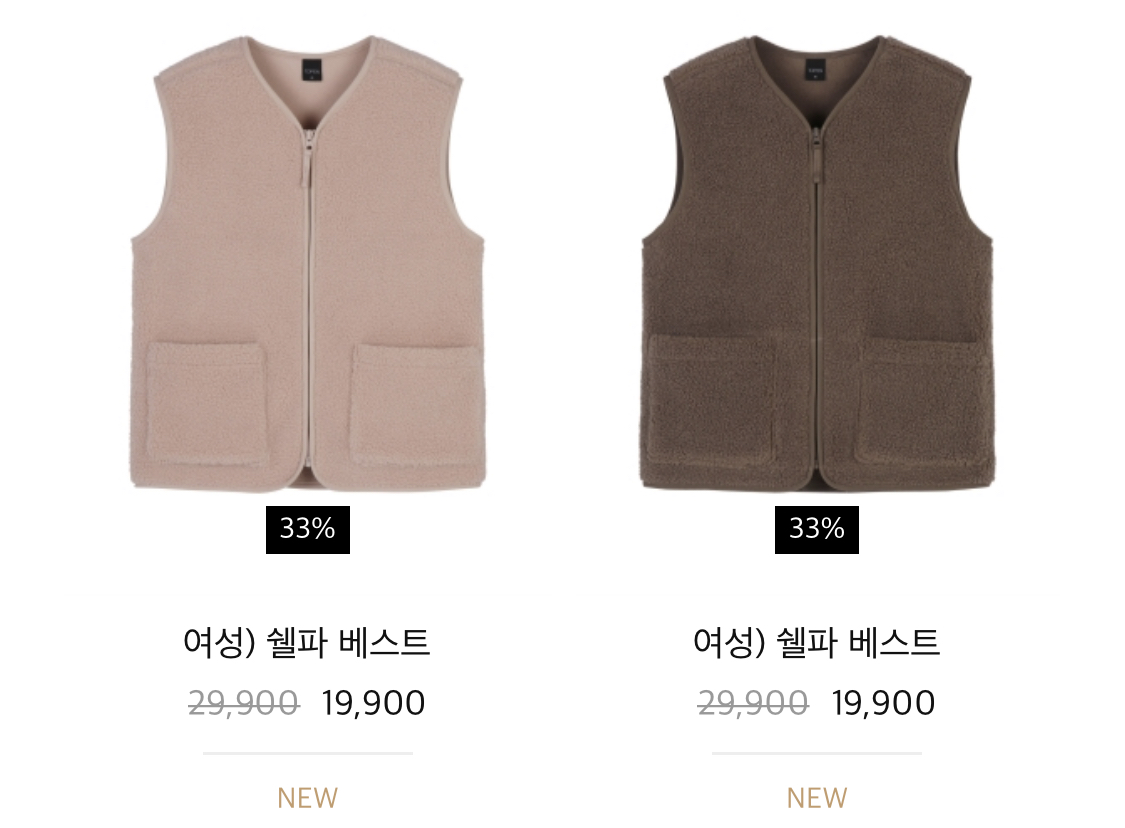 쉘파 베스트, 가디건, 집업 등 정가 69900원 품목이 39900원까지 할인되네요❤️❤️