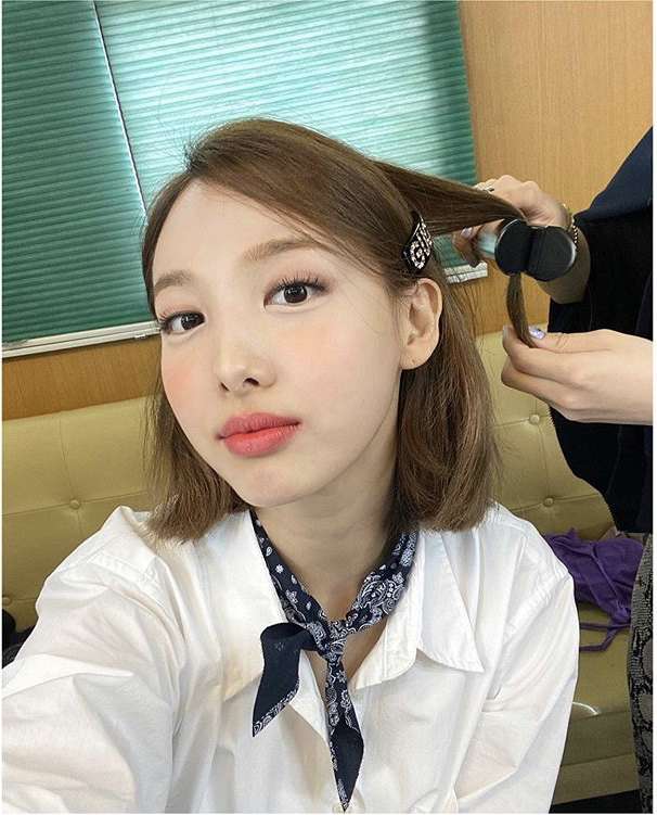 트와이스 나연양의 단정한 단발머리스타일은 무대에선 많이 바뀌더라구요.