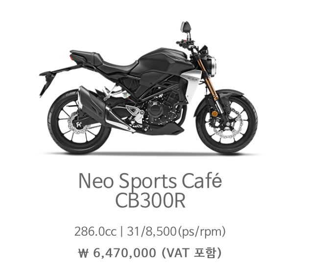 혼다 모터싸이클 모델 중 배기량 125cc 초과, 300 미만 모델들입니다. Crf250 rally, forza, 네오스포츠카페 cb300r입니다. 역시 neo 스포츠 멋있네요. 가격대는 600~700 중후반대 입니다.